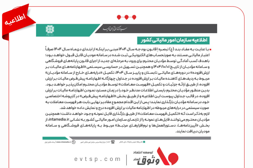 اطلاعیه مهم سازمان امور مالیاتی کشور