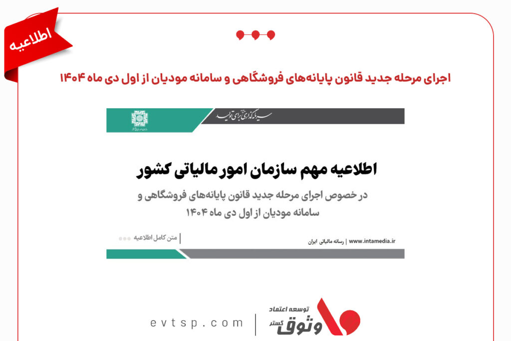 اطلاعیه – اجرای مرحله جدید قانون پایانه‌های فروشگاهی و سامانه مودیان از اول دی ماه ۱۴۰۴