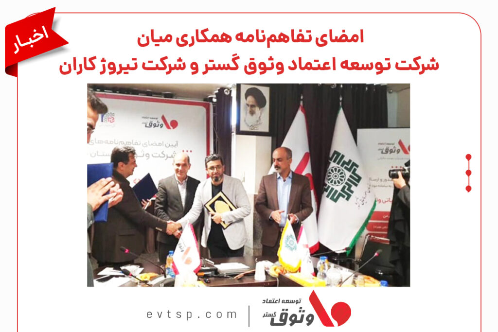 شرکت توسعه اعتماد وثوق گستر زیر مجموعه هلدینگ بانک ملت که در حوزه ارائه خدماتی همچون نصب و راهاندازی تجهیزات سختافزاری و نرمافزاری برای مودیان فعالیت میکند، امروز با شرکت تیروژ کاران غرب به مدیر عاملی هومن جبالی از شرکت های باسابقه و فعال استان کردستان تفاهمنامه همکاری امضا کرد.